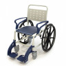 Кресло-коляска имеет 4 маленьких и 2 больших задних съемных колеса. Большие колёса позволяют пользователю передвигаться на стуле без посторонней помощи. Тормоза на каждом колесе позволяют зафиксировать кресло на месте, если это необходимо.  Подножки кресла-туалета можно снять.