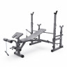 Скамья спортивная универсальная DFC GT-616 — это идеальное решение для тех, кто хочет организовать полноценный тренажерный зал у себя дома. Этот надежный и многофункциональный домашний тренажер предназначен для выполнения различных упражнений, направленных на развитие грудных мышц, спины, плеч, пресса и бедер. Скамья для жима подходит как для новичков, так и для опытных атлетов, обеспечивая комфорт и безопасность во время тренировок. Скамья для жима лежа способна выдерживать максимальную нагрузку до 350 кг, что делает её надежным и безопасным выбором для тренировок. Профиль рамы размером 30 х 70 х 1,2 мм гарантирует, что скамья будет оставаться стабильной даже при максимальных нагрузках. Набивка спинки и сиденья толщиной 50 мм из экокожи обеспечивает комфорт во время тренировок, позволяя снизить мышечную усталость и обеспечивая отличную поддержку. Скамья спортивная имеет 10 уровней регулировки спинки и 5 уровней регулировки сиденья, чтобы быстро преобразовать ее для тренировки в прямое, наклонное и даже отрицательное положение. Высота от сиденья до пола равна 51 см. Валики для ног из мягкого вспененного материала также регулируется в 2-х положениях по наклону и в 4-х положениях по высоте, чтобы занятия проходили максимально комфортно. Скамья для пресса также оснащена транспортировочными роликами, что облегчает её перемещение по помещению. Компенсаторы неровности пола обеспечивают устойчивое положение скамьи.
