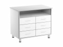 • Изготовлен из ЛДСП 16 мм белого цвета с кромкой ПВХ 0,45 мм, передние и задние стойки — из анодированного алюминиевого профиля